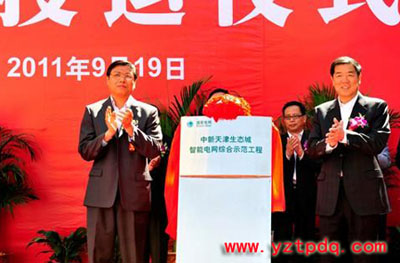 天津市委副書記、濱海新區(qū)區(qū)委書記何立峰和國(guó)家電網(wǎng)公司副總經(jīng)理、黨組成員欒軍共同為中新天津生態(tài)城智能電網(wǎng)綜合示范工程投運(yùn)揭牌。中新天津生態(tài)城智能電網(wǎng)綜合示范工程是天津智能電網(wǎng)建設(shè)發(fā)展的標(biāo)志性工程。此工程遵循“可實(shí)行、可復(fù)制、可推廣”的規(guī)劃思路,努力構(gòu)建安全可靠、優(yōu)質(zhì)清潔、高效互動(dòng)的能源供應(yīng)體系和服務(wù)體系。該工程投運(yùn)后,不僅風(fēng)電、光伏發(fā)電等可再生能源利用率可達(dá)到20%以上,而且電網(wǎng)能實(shí)現(xiàn)和有線電視、IP電話、互聯(lián)網(wǎng)的相互融合,其遙控、遙測(cè)、信息反饋的智能化能力可做到從居民生活到公共設(shè)施,再到工業(yè)生產(chǎn)的全涵蓋。