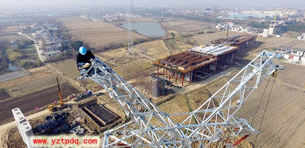 2016年12月7日,江都境內(nèi)110千伏聯(lián)仙線施工現(xiàn)場(chǎng)一片忙碌景象,江都供電公司施工人員正忙著升高鐵塔線路,為連淮揚(yáng)鎮(zhèn)高鐵施工讓位。