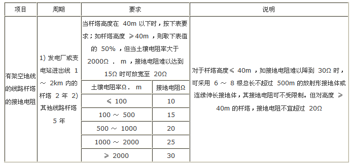 表1 桿塔的工頻接地電阻測(cè)量周期及要求