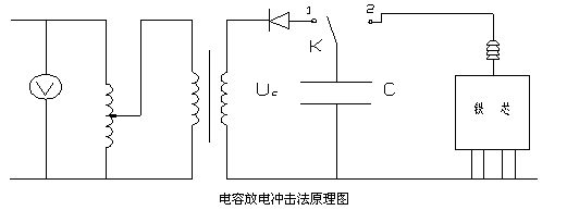 對(duì)這種情況,可采用電容沖擊放電法來進(jìn)行排除。圖4為電容充放電電路,使用時(shí)首先合雙向開關(guān)K到1側(cè),用直流高壓發(fā)生器對(duì)電容C充電,充電后快速把開關(guān)K合到2側(cè),對(duì)變壓器故障點(diǎn)放電。對(duì)1號(hào)主變實(shí)施了第一次沖擊,有間歇地反復(fù)進(jìn)行了7次沖擊后,測(cè)試鐵芯對(duì)地絕緣電阻為550MΩ,鐵芯接地故障得到了消除。