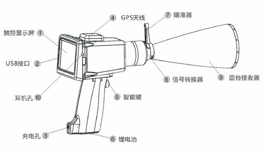 7)瞄準(zhǔn)器:用于準(zhǔn)確定位被檢測位置