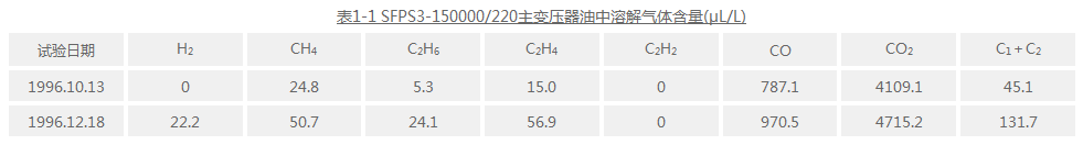 如前所述,我們在利用油中溶解氣體分析變壓器內(nèi)部故障時,不僅注意油中氣體組分含量和特征氣體比值的判據(jù),而且還要綜合考慮氣體一些輔助的診斷判據(jù)。為此,我們以一臺150000/220主變壓器的鐵芯多點接地故障診斷為例,說明油中溶解氣體分析為依據(jù)綜合診斷故障的大致全過程。