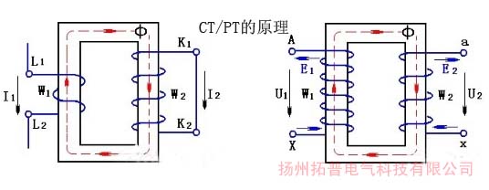 電壓互感器的原理與變壓器相似,如圖所示。一次繞組(高壓繞組)和二次繞組(低壓繞組)繞在同一個鐵芯上,鐵芯中的磁通為Ф,是用來變換線路上的電壓的設(shè)備。主要是用來給測量儀表和繼電保護裝置供電,用來測量線路的電壓、功率和電能,或者用來在線路發(fā)生故障時保護線路中的貴重設(shè)備、電機和變壓器,因此電壓互感器的容量很小,一般都只有幾伏安、幾十伏安,大的也不超過一千伏安。