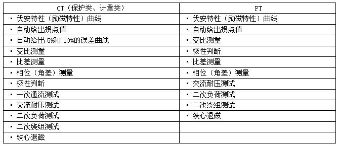 • 按規(guī)程自動給出CT/PT(勵磁)拐點(diǎn)值。