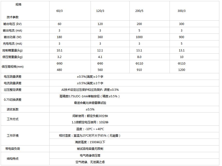 直流高壓發(fā)生器主要適用于電力部門、工礦、冶金、鋼鐵等企業(yè)動(dòng)力部門對(duì)氧化鋅避雷器、電力電纜、變壓器、斷路器、發(fā)電機(jī)等高壓電氣設(shè)備進(jìn)行直流耐壓試驗(yàn)或直流泄露電流試驗(yàn)。TPZGF系列直流高壓發(fā)生器應(yīng)用AIPWM技術(shù),對(duì)PWM技術(shù)的不準(zhǔn)確線性度進(jìn)行了調(diào)整,使儀器精度得到了大幅度提高。并采用AI技術(shù)屏幕設(shè)定過(guò)壓保護(hù)和過(guò)流保護(hù)取代了數(shù)字撥盤開(kāi)關(guān)只能設(shè)定電壓值,不能設(shè)定電流值及電壓飄移的問(wèn)題。升壓方式:手動(dòng)升壓。0.75UDC1mA功能按鈕,方便氧化鋅避雷器試驗(yàn),精度≤0.5%。增加了任意電壓、電流下計(jì)時(shí)功能,及總時(shí)間T1和分段計(jì)時(shí)T2功能。儀器增加了萬(wàn)年歷和時(shí)間功能。