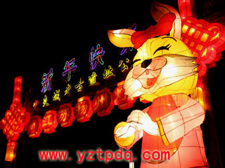 2006年春節(jié),揚州工藝廠設(shè)計制作的一批傳統(tǒng)彩燈被送到了寶島臺灣。記者了解到,在這批花燈中,“百犬迎春”中一條大麥叮犬,長10米,高9米,體重達10噸,運用電腦科技制造出聲、光電動效果,會搖頭、昂首、動耳、擺尾,動作自然,會講十五種語言。及至今年,揚州花燈已連續(xù)6年春節(jié)為臺灣佛光山寺制作并展出了一批大型彩燈。