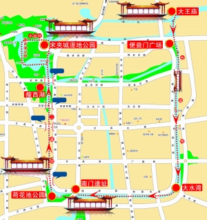 瘦西湖至古運河新增加的“綠楊城郭”精品水上游覽線將在4·18正式亮相。據(jù)古運河旅游有限公司相關負責人王娟介紹,“綠楊城郭”水上游覽線大致路線為:從瘦西湖的東堤碼頭,經(jīng)二道河進入荷花池,過二道溝套閘,至古運河的東關古渡,全長約5公里。整個游覽行程為50分鐘。“4·18”之后,該條水上游覽線將正式對市民開放。