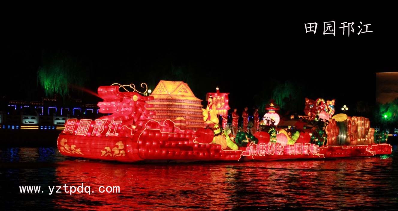 整條花船形似流水,內(nèi)透光與跑馬燈相結(jié)合,動感十足,燈光亮麗,預(yù)示著邗江明天更加輝煌、燦爛。