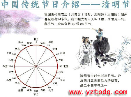 中華民族的傳統(tǒng)節(jié)日-清明節(jié)大約始于周代,已有二千五百多年的歷史。清明最開始是一個(gè)很重要的節(jié)氣,清明一到,氣溫升高,正是春耕春種的大好時(shí)節(jié),故有“清明前后,種瓜種豆”。“植樹造林,莫過(guò)清明”的農(nóng)諺。后來(lái),由于清明與寒食的日子接近,而寒食是民間禁火掃墓的日子,漸漸的,寒食與清明就合二為一了,而寒食既成為清明的別稱,也變成為清明時(shí)節(jié)的一個(gè)習(xí)俗,清明之日不動(dòng)煙火,只吃涼的食品。