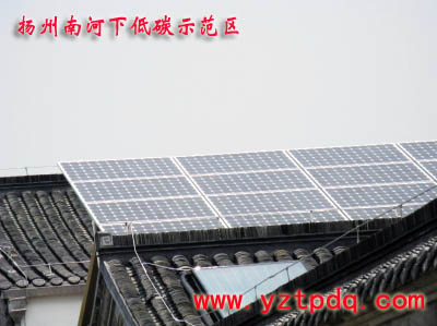 昨天上午,記者在南河下低碳示范區(qū)內(nèi)看到,戶外路燈已經(jīng)安裝結(jié)束。項(xiàng)目負(fù)責(zé)人介紹,這些路燈都是采用的節(jié)能燈,電源全部來自太陽能光伏板發(fā)電。項(xiàng)目負(fù)責(zé)人將記者帶進(jìn)項(xiàng)目展示區(qū)的3號樓二樓平臺,兩名技術(shù)人員正在平臺一個(gè)“人”字頂上安裝光伏板,光伏板面積為10多平方米。“光伏板分別安裝在3號樓和11號樓平臺上,共有24塊板子,總發(fā)電能力為4.32千瓦。”該項(xiàng)目負(fù)責(zé)人介紹,整個(gè)路燈的供電全部依賴上述太陽能發(fā)電。