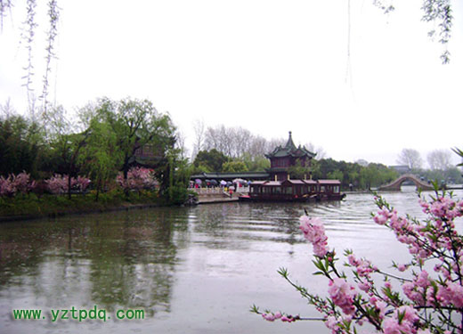 很多地方本來(lái)很美,但是也許旅游旺季時(shí)人多了也沒有意思,但那天恰好全無(wú)喧囂,沒有到處飄揚(yáng)的導(dǎo)游旗,沒有小喇叭的尖叫,就覺得什么都很好,沒有一處“視覺污染”。于是就覺得二十四橋特別詩(shī)情畫意,覺得詩(shī)畫長(zhǎng)廊特別舒展開闊,覺得“四橋煙雨”特別清新靜美……這就值得流連又流連了,春意濃濃地化在瘦西湖中,慢慢的泡開來(lái),溢了滿湖;而我們,真甘愿在這里沉沉地品這杯泡得恰到好處的春茶。