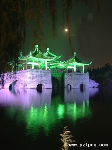 揚州曾經(jīng)被稱為月亮城,一首“天下三分明月夜,二分無賴是揚州”使揚州占去了月亮三分之二的光輝。傳說,中秋夜在揚州的五亭橋可以看到15個月亮。
