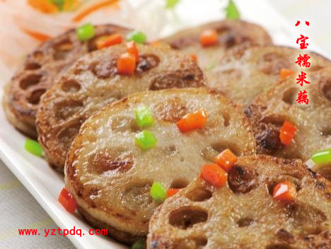 糯米藕是很多女孩的心頭之好,既可當(dāng)零食,也可以上得酒席。在揚(yáng)州,一年四季都能吃到八寶糯米藕,不過(guò),倘若說(shuō)好吃,還得數(shù)用寶應(yīng)出產(chǎn)的蓮藕來(lái)制作,才能達(dá)到入口酥軟、香糯、甜潤(rùn)、清香的感覺(jué)。制作這道菜的秘訣在于一定要用成年老藕。