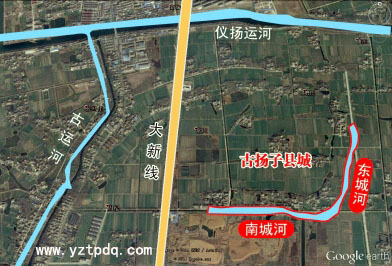 2014年12月4日,江蘇省紅樓夢學會會員陸守超,根據衛(wèi)星地圖結合史料記載,在儀征經濟開發(fā)區(qū)(新城鎮(zhèn)東南)越江村或東升村境內,發(fā)現(xiàn)疑似古揚子縣城的東城河和南城河遺存。古揚子縣城就位于當中焦莊組、曹莊組和邵莊組一帶。在古揚子縣城遺址的東北角還發(fā)現(xiàn)了都天廟遺址。