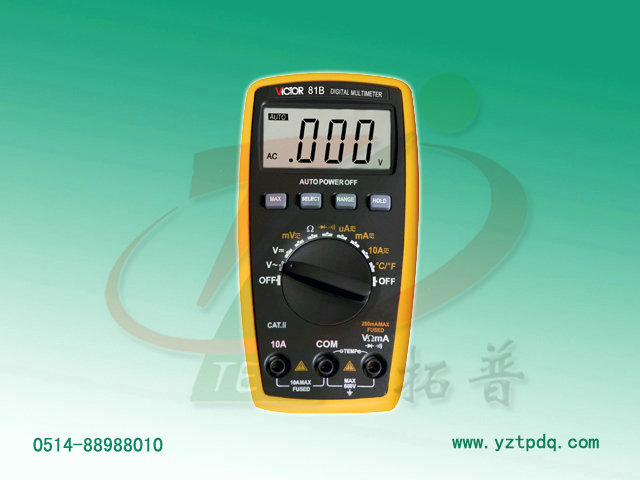 4、自恢復保險管保護電路設計; 基本功能 量程 VICTOR 81B 直流電壓 200mV/2V/20V/200V/600V ±(0.5%+4d) 交流電壓 200mV/2V/20V/200V/600V ±(0.8%+6d) 直流電流 200uA/2000uA/20mA/200mA/ ±(1.0%+10d) 交流電流 200uA/2000uA/20mA/200mA/ ±(1.5%+10d) 電阻 200Ω/2kΩ/20kΩ/200kΩ/2MΩ/20MΩ ±(0.8%+4d) 攝氏溫度 -20 ±(1.0%+5d) 華氏溫度 (0-1832)℉ ±(1.0%+5d) 特殊功能 二極管/通斷報警 √ 低電壓顯示 √ 數(shù)據(jù)保持 √ 自動關機 √ 功能保護 √ √ 防震保護 √ 單位符號顯示 √ 大值測量 √ 相對值測量 / 占空比測量 / 輸入阻抗 10MΩ 采樣速率 3次/秒 交流頻響 (40-400)Hz 顯示 3 1/2位(1999) 液晶尺寸 57× 電源 3V(1.5×2)